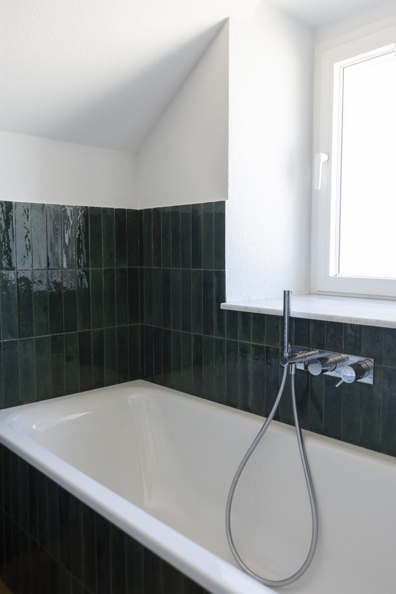 Il progetto di ristrutturazione di questo appartamento genovese, situato nel piccolo borgo di pescatori di Vernazzola, è stato curato dall'architetto Paolo Migone. La ristrutturazione parte dall’intervento Sismabonus di rifacimento integrale del tetto in ardesia con contestuale consolidamento e ripristino delle facciate dell’intero immobile che riporta a nuovo la palazzina e ne ripristina la vivace colorazione rosa, parte integrante del pittoresco quartiere di appartenenza. Il tetto a spiovente è stato realizzato con travi in legno lamellare a vista e dotato di nuovi lucernari Velux per aumentare l’illuminazione della mansarda. La mansarda è stata convertita in zona notte con bagno e armadi a muro, progettati per sfruttare al meglio gli spazi e rispettare le altezze minime. Le finiture interne sono state scelte in tinte chiare per favorire la luminosità. L’ingresso si apre su un open space con vista diretta sulla spiaggia di Vernazzola. Le aperture con serramenti ad anta unica sono state pensate per garantire luce naturale e visuali aperte sul golfo. Al piano principale è stato installato un impianto di riscaldamento a pavimento, eliminando i radiatori tradizionali. I bagni si caratterizzano per l’uso di tonalità verde/blu e si distinguono per le finiture: resina per il bagno del piano principale, piastrelle in gres di piccolo formato per quello in mansarda.